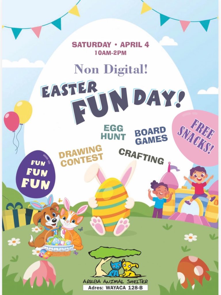 Looking for something beyond brunch? The Aruba Animal Shelter’s Easter Fun Day on Saturday, April 4 from 10:00 AM to 2:00 PM adds festive family fun to the weekend.