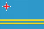 The Aruba flag has four colors: Bunting yellow, Larkspur (or U.N.) Blue, Union Jack Red and White. The flag of Aruba consists of a red star with a white outline set against a sea-blue background with two parallel yellow stripes.The star symbolizes the four points of the compass, denoting the varied source of more than 40 nationalities living on Aruba.
