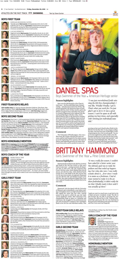Aruban athlete Jemal Le Grand was named as one of the best swimmers of the USA high school competition